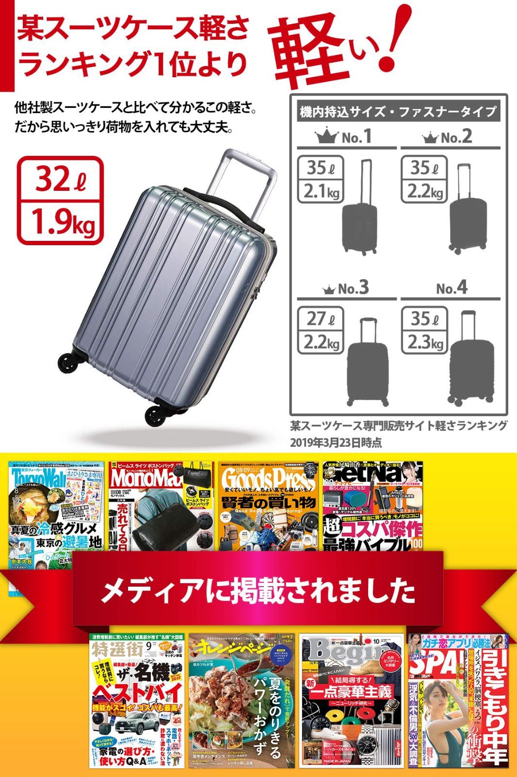 【とにかく軽い!国内最軽量級】1.9kg 約32L 【機内持込サイズ】Sサイズ 300円コインロッカー対応 国内線100席以上 LCC 機内持ち込み対応 【大きさ】 ■総外寸 高さ54.5cm 幅33cm 奥行23cm ■外寸 高さ46cm 幅32.5cm 奥行23cm