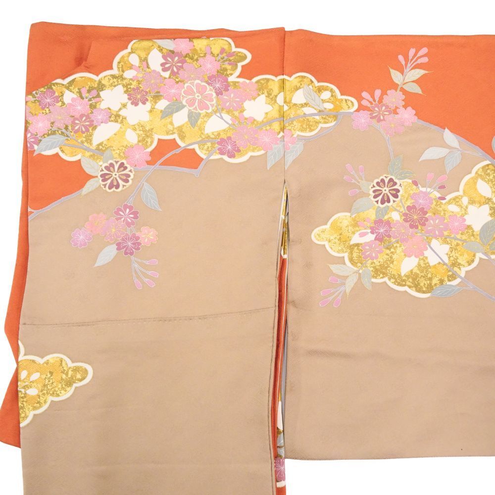 訪問着 袷 正絹 リユース くすみ煉瓦色 ベージュ 楓 桜 流水 金彩 友禅 109-02-8 8050-00503