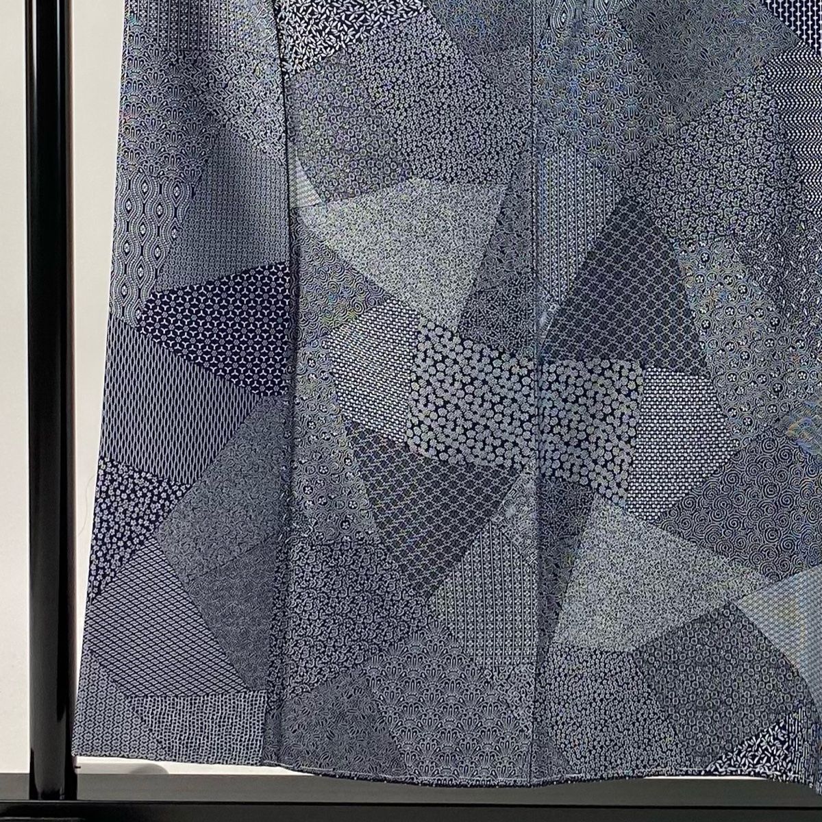 小紋 身丈156 cm 裄丈62 S 袷 寄せ柄 小花 濃紺 正絹