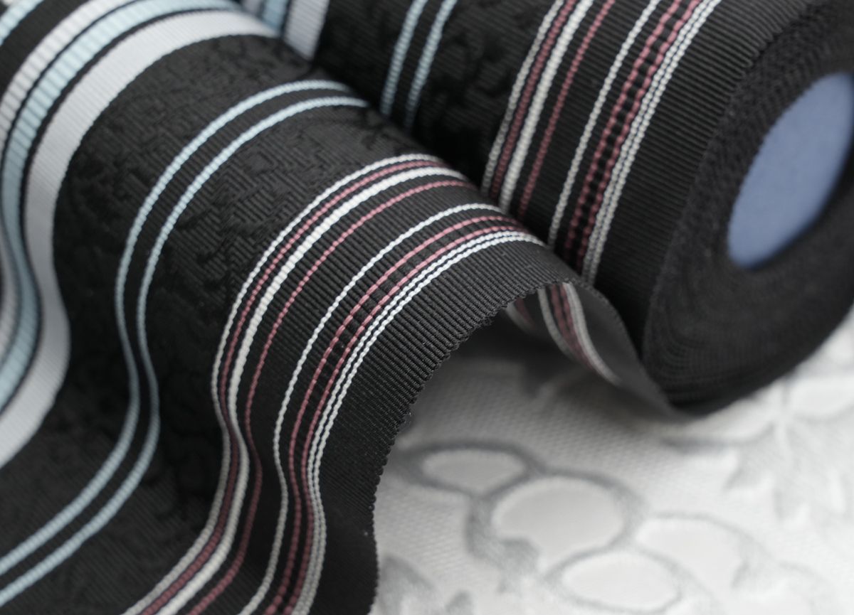 最近はコストダウンする為に金銀糸以外の部分にもポリエステルなどを少量混ぜている博多帯も見かけますが、黒木織物さんでは最高の絹糸100%使用して織り上げられていますので、博多織の特徴であるしっかりとした締め心地を感じて頂けます。