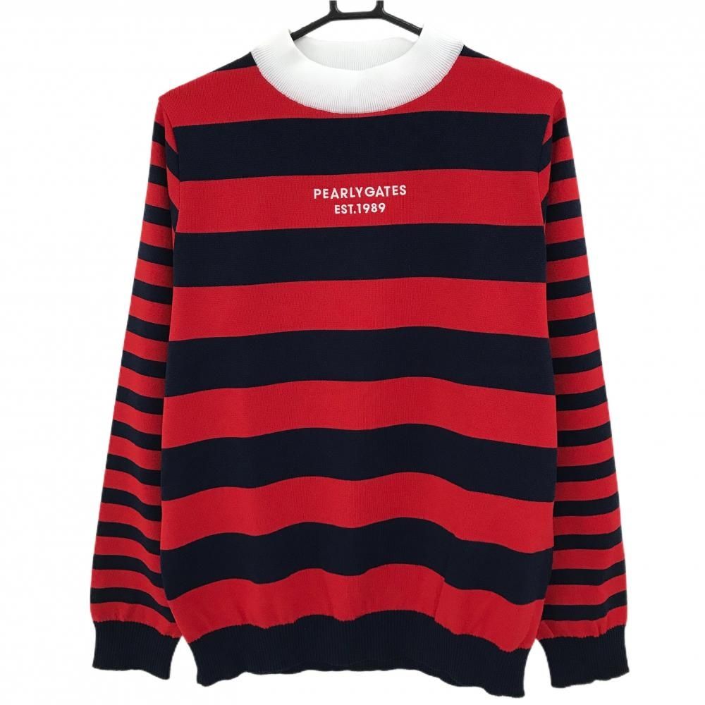 パーリーゲイツ セーター レッド×ネイビー ボーダー ロゴ白 ウール混 ニット メンズ 6 XL ゴルフウェア PEARLY GATES