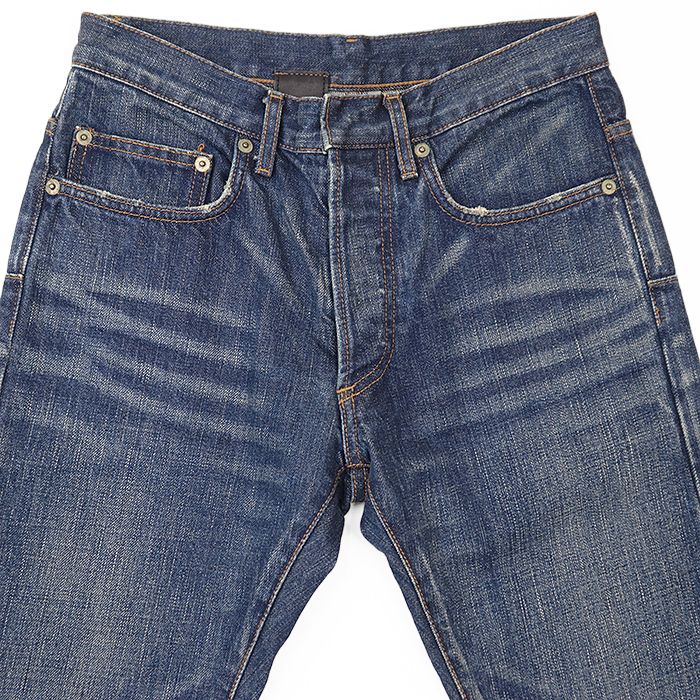 【アイテム】デニム ジーンズ スリムストレート コットン100% ユーズド&ダメージ加工 ノンストレッチ パンツ