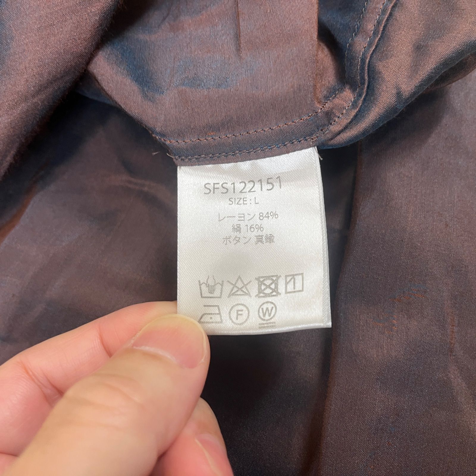 スエサダ シルク 光沢ドレスシャツ バルーン袖 ワインレッド L