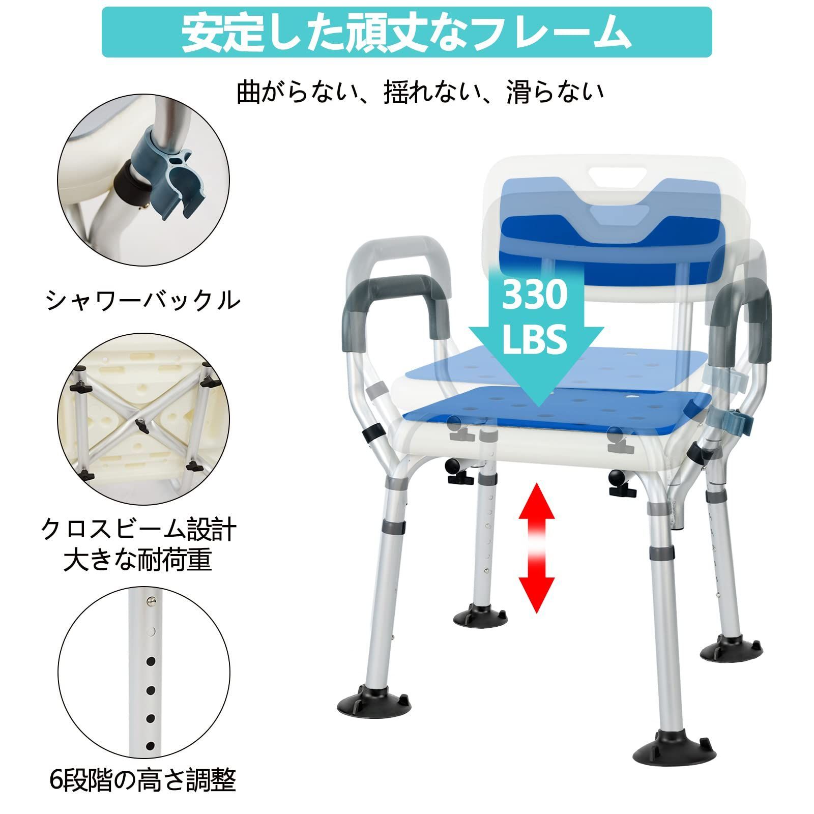 新着 大吸盤 シャワーチェア お風呂椅子 介護用 6段階高さ調節 背もたれ付き 手すり 取り外し アルミ合金フレーム 軽量 丈夫 シャワー用 介護ダイニングチェア 耐荷重136 kg 日本語説明書付き