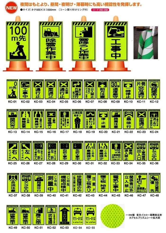 当社オリジナル 蛍光イエロー高輝度反射 コーン看板 KC 31〜40 全55種 500 300 mm 立て看板 工事予告看板 路上看板 徐行 工事中 お願い看板 右折 左折 通行止 測量中 注意看板 案内板 道路工事 安全対策 パイロン用看板 コーン
