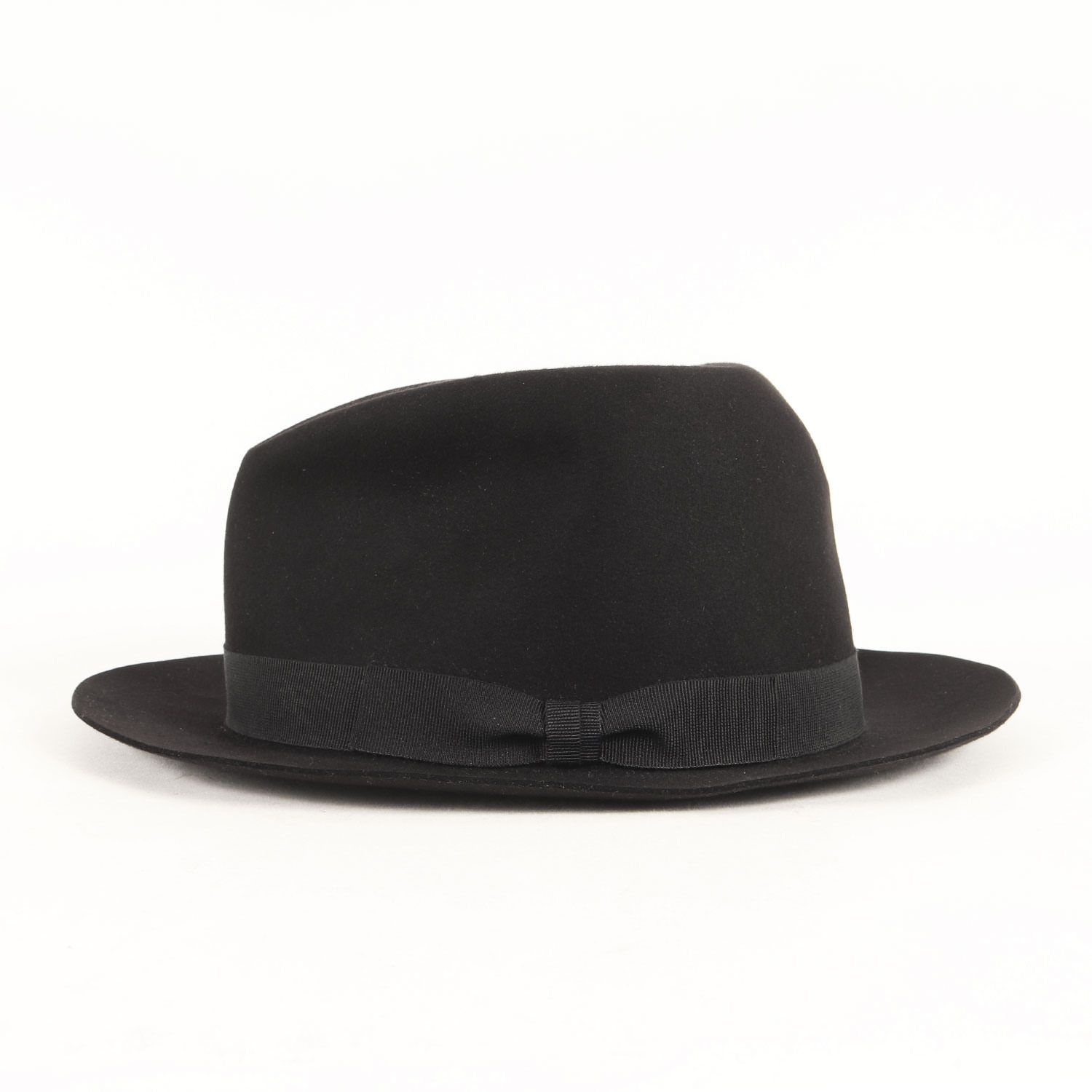 HERMES エルメス ハット ブラック 黒 サイズ 57 リボン付き ビーバー ウール 中折れ フェルト イタリア製 ブランド ファッション アイテム メンズ