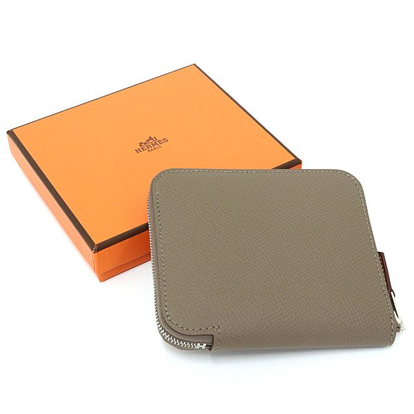 エルメス コインケース アザップ コンパクト シルクイン エプソン エトゥープ W刻印 製 Sランク