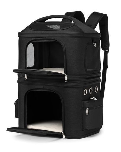 猫2匹リュック分離可キャリー2層ペットキャリーバッグ小型犬ソフトクレート折りたたみ可マット付き2 way通院用 ブラック