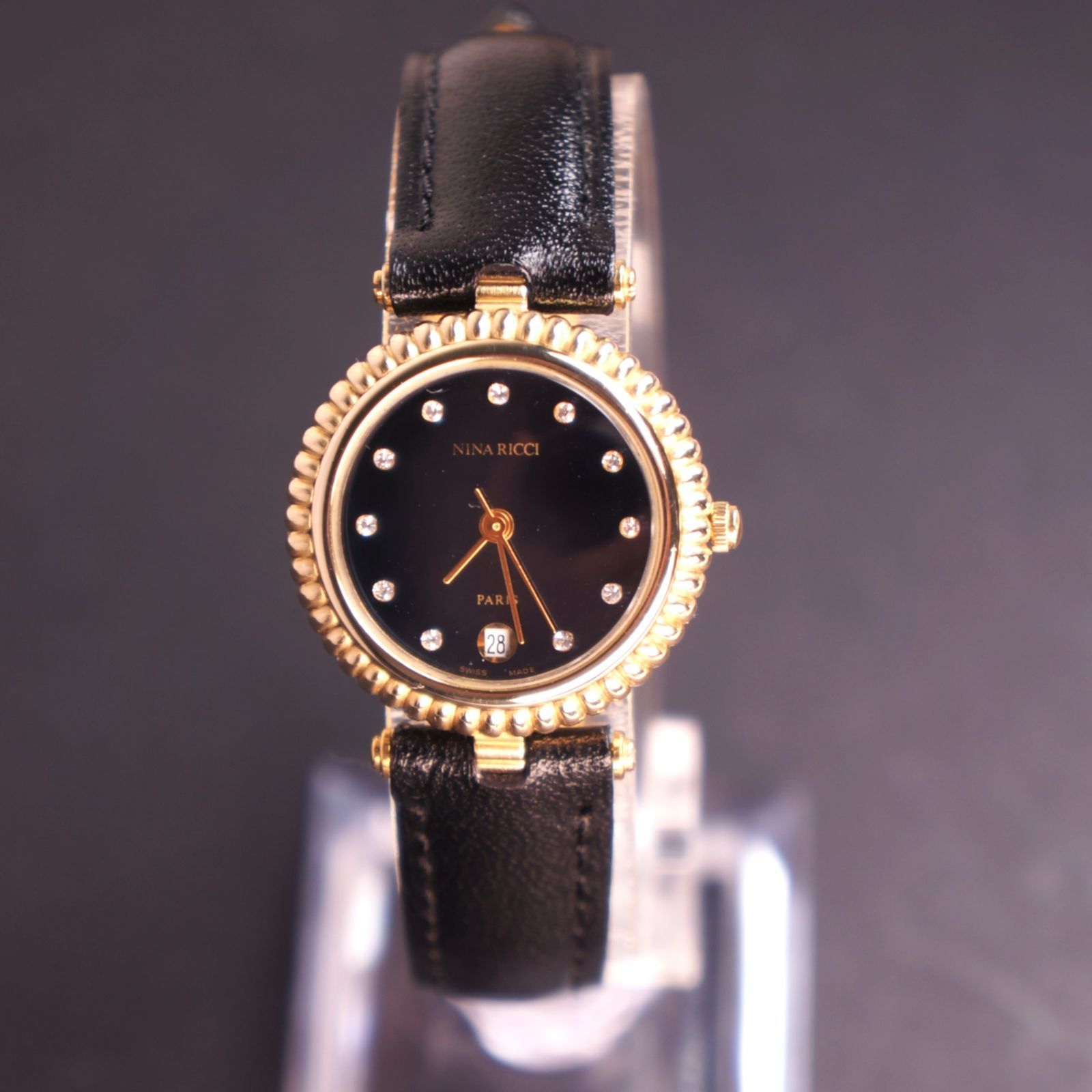 稼働 NINA RICCI 11 P石付き ネイビー文字盤 レディース腕時計 ベルト 電池交換済