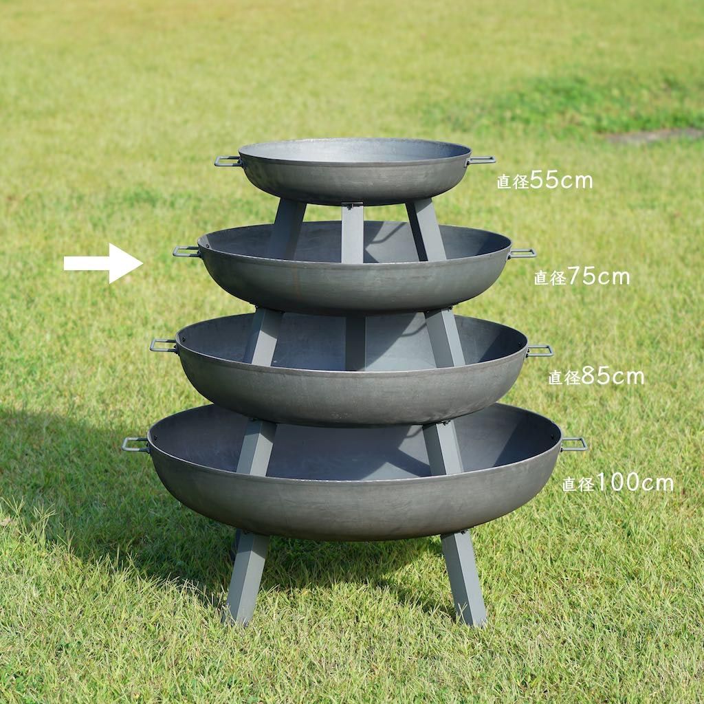Fire Pit GARDEN シリーズは4サイズを用意しております。直径で、55cm、75cm、85cm、100cmがございます。