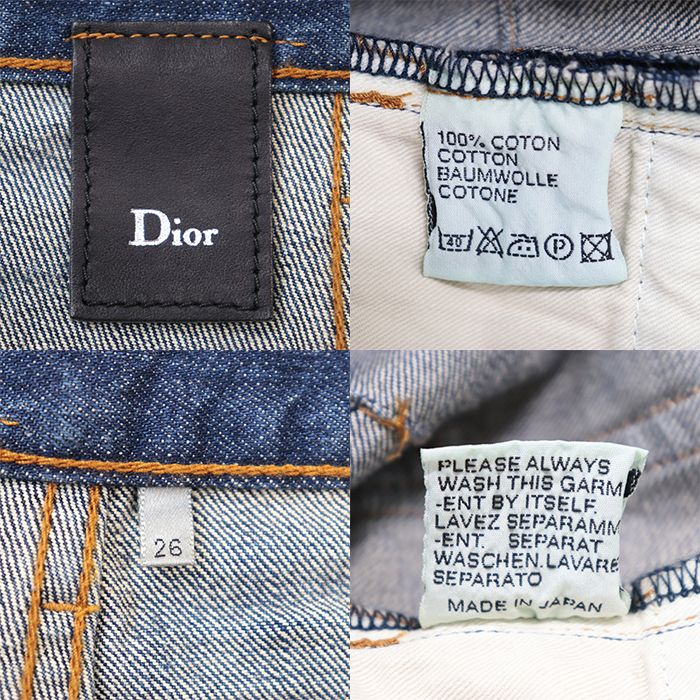 Dior ディオール デニムパンツ ジーンズ スリムストレート ボタンフライ ユーズド & ダメージ加工 ノンストレッチ シグネチャー ロゴ CD メタルパーツ コットン ボトムス メンズ サイズ 26 ユーズドインディゴ