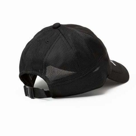 速乾性に優れた格子目のクール素材を使用したメッシュキャップ。クラウン部分はジェットキャップとベースボールキャップを組み合わせたような変形パターンを採用。ジェットキャップ特有の丸みを帯びた浅めのシルエットと、綺麗なカーブを描いたツバのハイブリッドなデザイン。フロントのロゴは厚盛プリント、つば部分のロゴは刺繍で表現。
