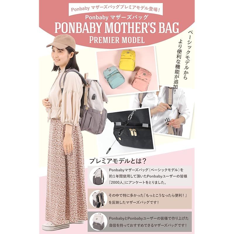 商品名:[Ponbaby] マザーズリュック プレミアモデル (大容量 / 16のポケット) マザーズバッグ リュック 軽量 多機能 USBポート付き 出産祝い プレゼント (オールブラック【プレミアモデル】)