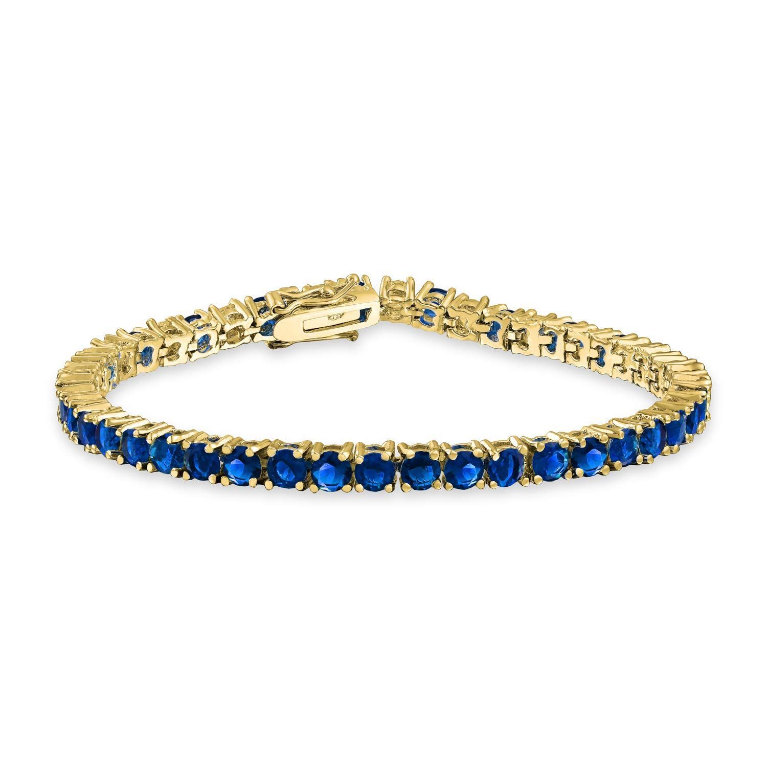 [Bling Jewelry] 積み重ね可能なブライダル12.00 CT 4プロングのバスケットは女性の約束の結婚式14Kの金によってめっきされる華麗な切口の円形の立方体のジルコニアのソリティアAAA CZのテニスブレスレットのために7.5インチの宝石類の調子色の誕生石を置き、模造した