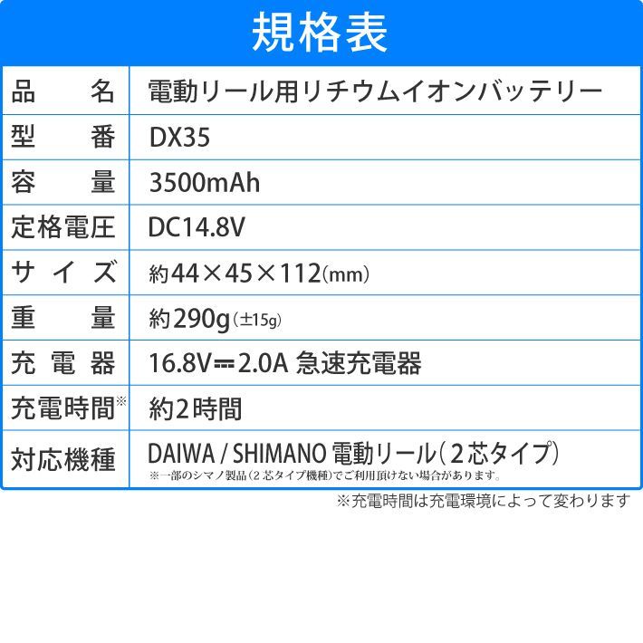 ※こちらの商品はダイワ シマノ2芯電動リール用バッテリーとなりますが、