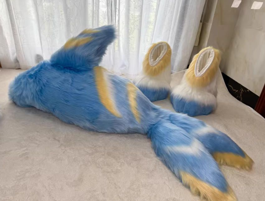 ファースーツ 着ぐるみセット NO 253 犬 青 ブルー ケモノ 全頭ヘッド ぬいぐるみ コスプレ コスチューム