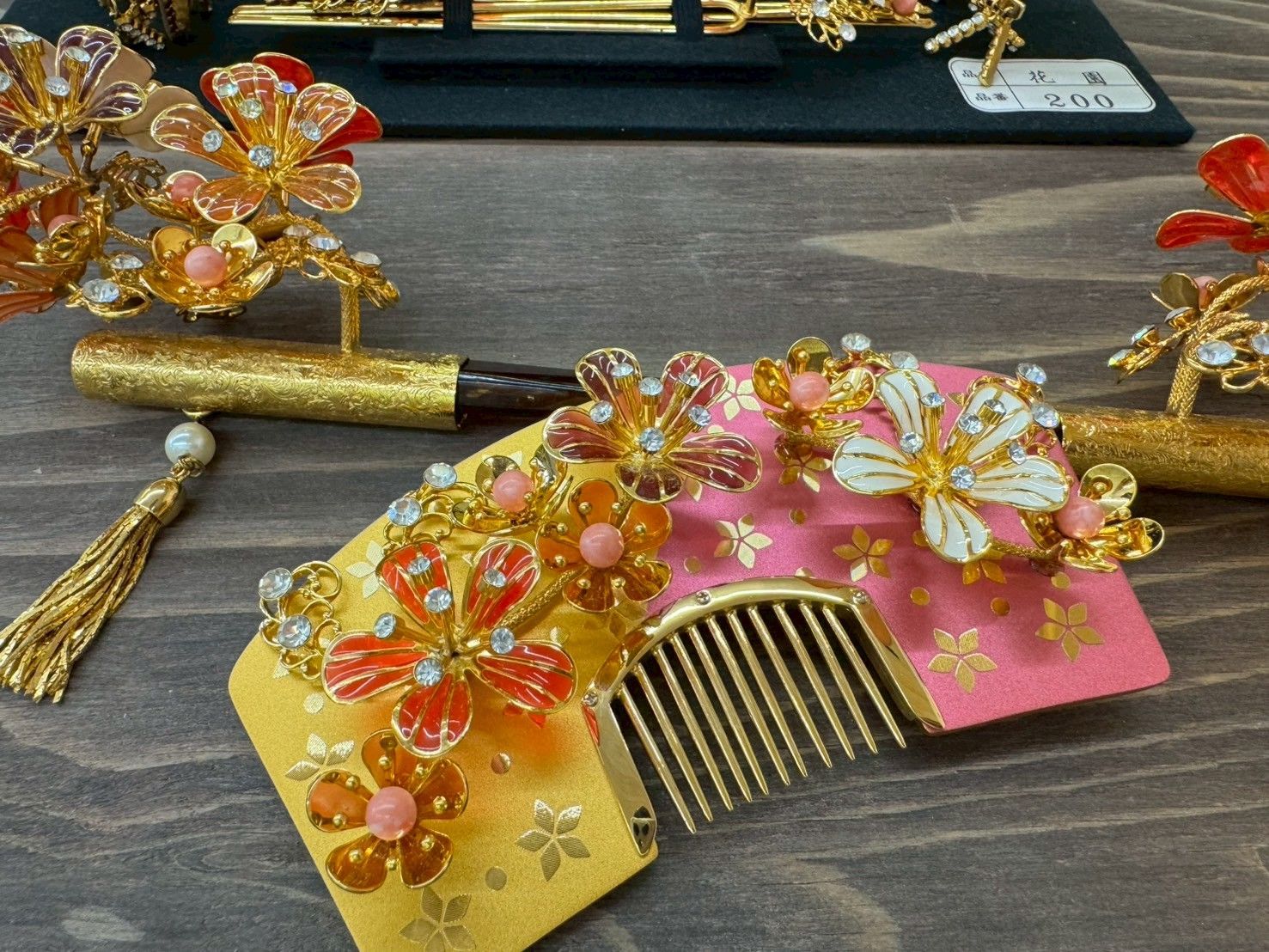 内容物:前櫛、前挿(左右)、中挿(左右)、後挿(左右)、専用ケース