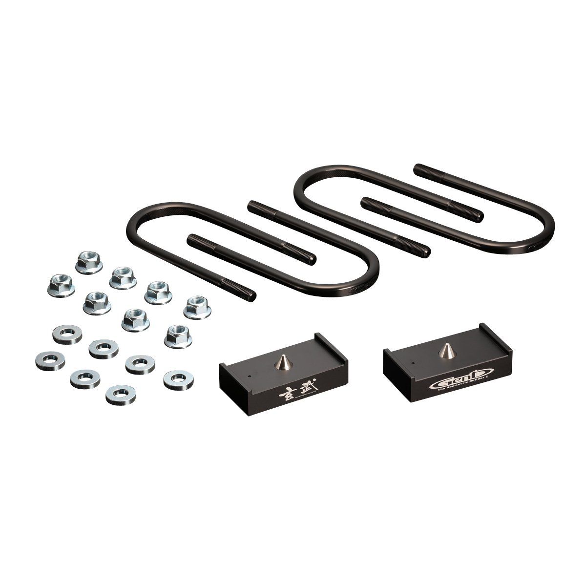 ハイエースをロ-ダウンする際に必要となるダウンブロックを多機能化することで、従来製品では補えなかった欠点を完全に克服しました。ブロック本体には、軽量かつ剛性に優れたA6061アルミ押出材を使用し、高精度の切削加工を施したのち、ショットブラストとブラックアルマイト処理で仕上げました。また、あらたな機能として、センターピンを円錐形状とした「フィッティングコーン」を採用。強烈な保持力を誇る“サーフェスロックUボルトとの組み合わせによる完璧なフィッティングを実現しました。さらに、前後方向のズレが原因で起こるアクスルハウジングの振れ(スラスト角)を抑制する「アクスルガイド」が、いかなる路面状況でも安定した直進性をサポートします。ほかにも、オフセットしたアクスルを車体のセンターへ調整し、絶妙なツラ位置セッティングを可能にする「センタリング機能」など、多彩なスペックを誇ります。ダウン量は0.5インチ(12.5ミリ)ごとに7種類のサイズを設定し、希望の車高へ確実にセットアップすることができます。