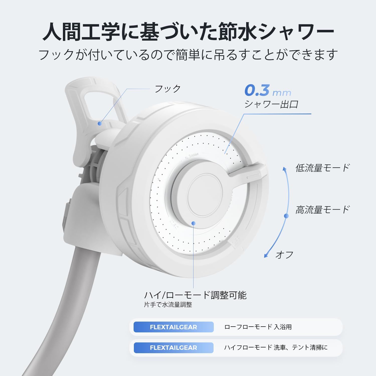 FLEXTAILGEAR MAX SHOWER ポータブルシャワー 簡易シャワー 電動シャワー 携帯シャワー キャンプ シャワー シャワー ポンプ 18.5wh USBーC充電式 水流量両段モード 水圧強い 軽量 コンパクト 家庭用 釣り 海水浴 サーフィン 旅行 洗車 屋内 屋外 防災 植物潅水 アウトドアシャワー