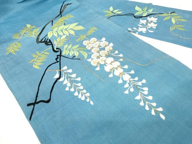 平和屋着物 アンティーク 大正ロマン 九寸名古屋帯 総刺繍 枝垂れ藤 金糸 正絹 az