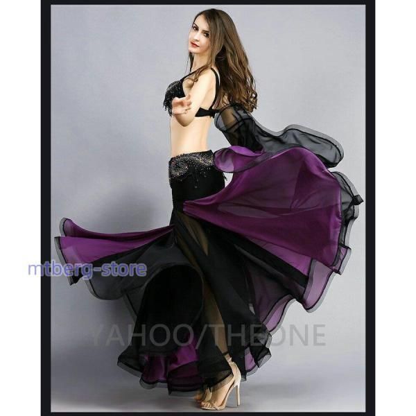 社交ダンス ベリーダンス衣装 フリンジ スパンコール クラーデション レディース 上下セット 腰巻き 3点セット 舞台風 演出WP売り切れ間近