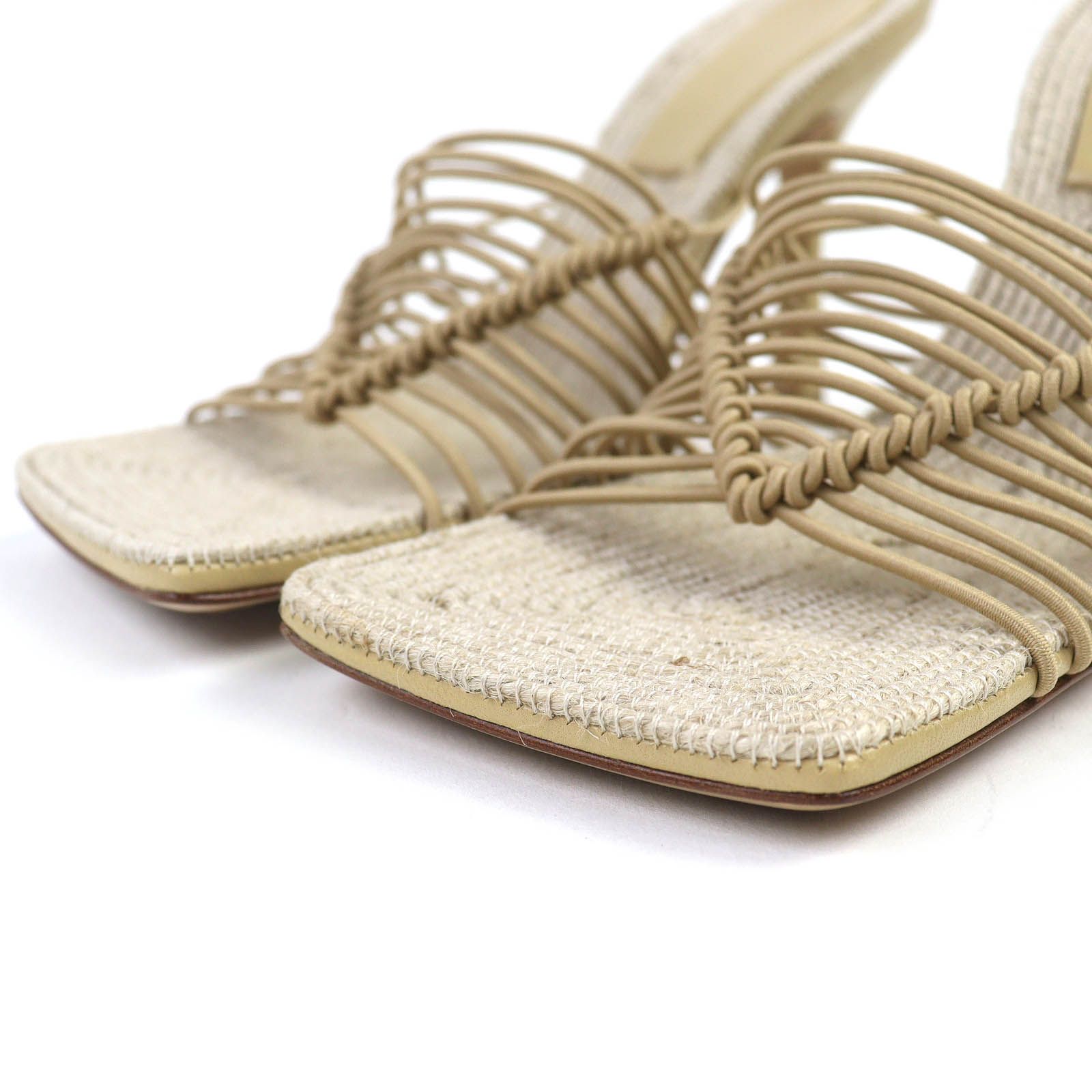 ボッテガヴェネタ 651386 CINDY シンディ レザー使 スクエアトゥ ストレッチ サンダル ミュール CANE SUGAR ベージュ系 38 箱 保存袋付き イタリア製 レディース