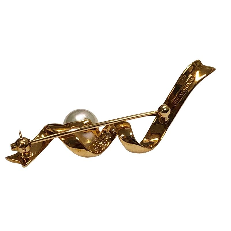 ミキモト リボンモチーフ ブローチ K 18刻印 真珠 珠径約8.4 mm メレダイヤモンド パール
