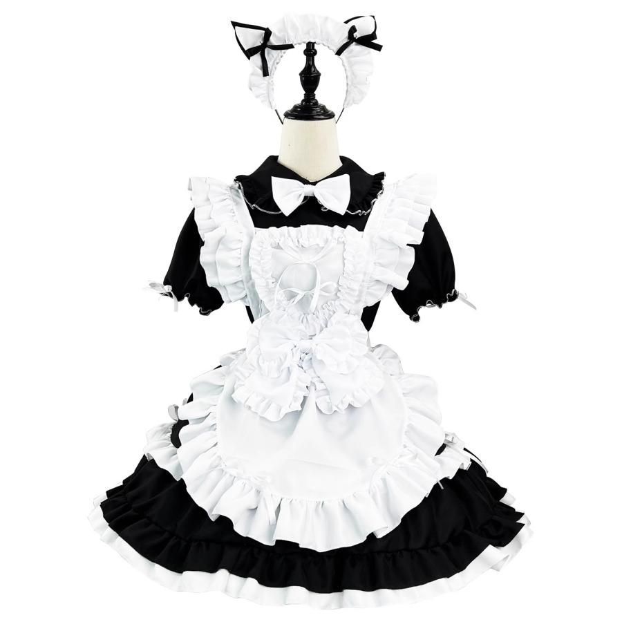 猫系メイド服 コスプレ ロリータ 黒白 典 エプロン 鈴 セクシー 大 ワンピース 職人製作