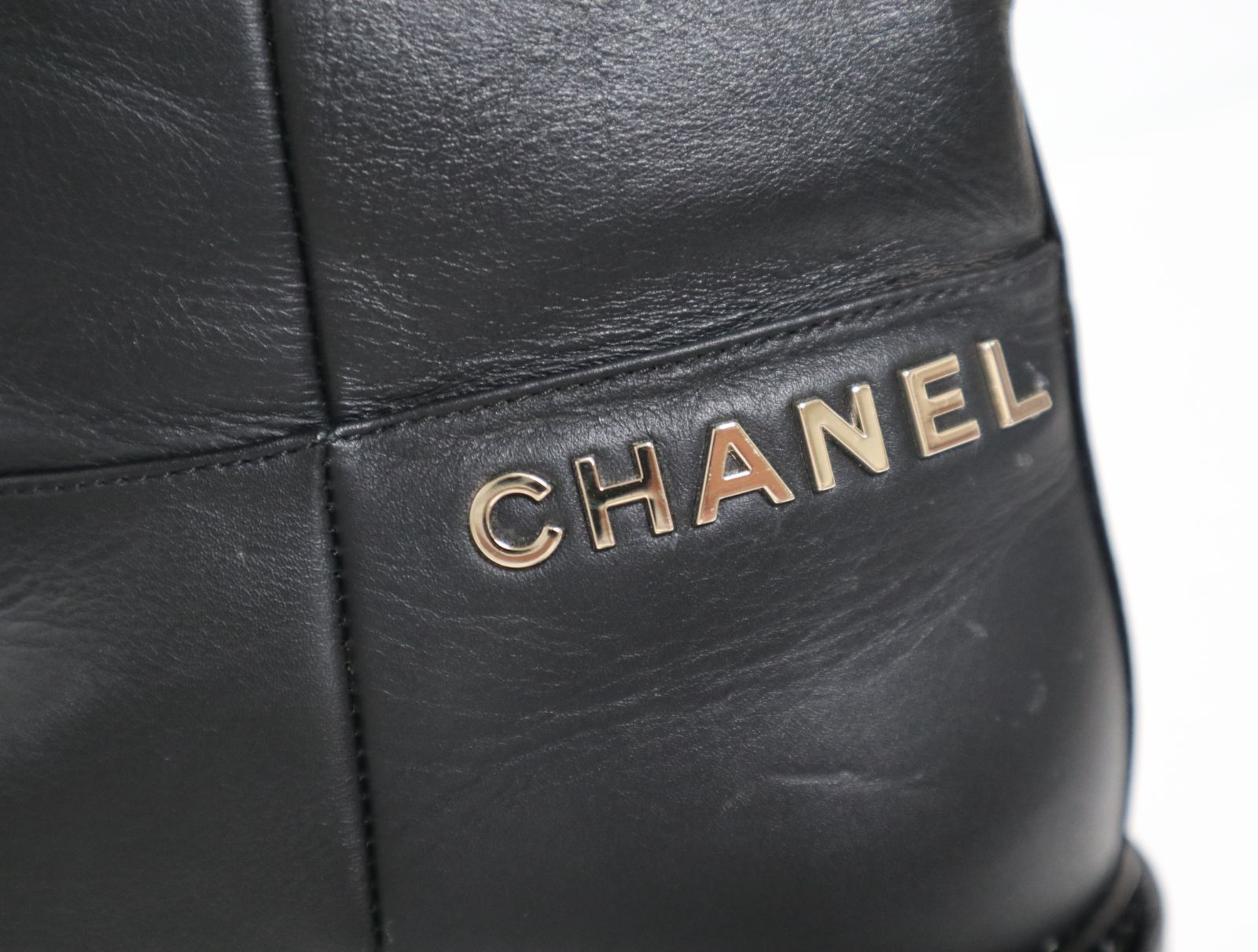 ワンポイントのロゴが目を引く、シンプルなシャネルのブーツ。