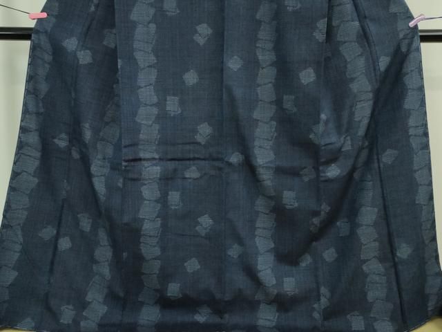 平和屋着物 上 本場結城紬 重要無形文化財 80亀甲 飛び亀甲柄 色紙重ね 間道 濃藍色地 kh 5