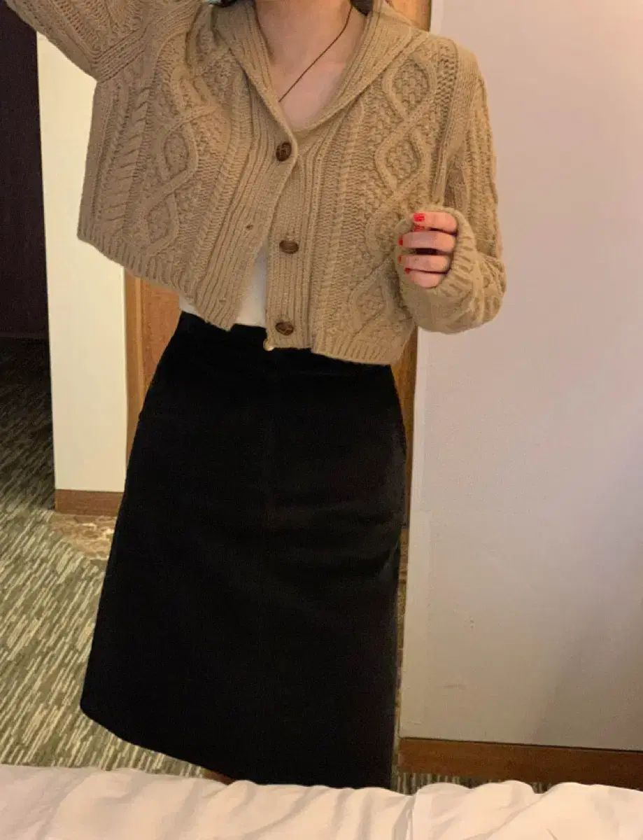 これはMielのケーブルニットカーディガンです。色はほのかなベージュ調で、ケーブル織りも高級感があります。クロップド物の長さは脚を長くする効果があります。他に質問がない場合は、すぐに安全な支払いを行ってください!