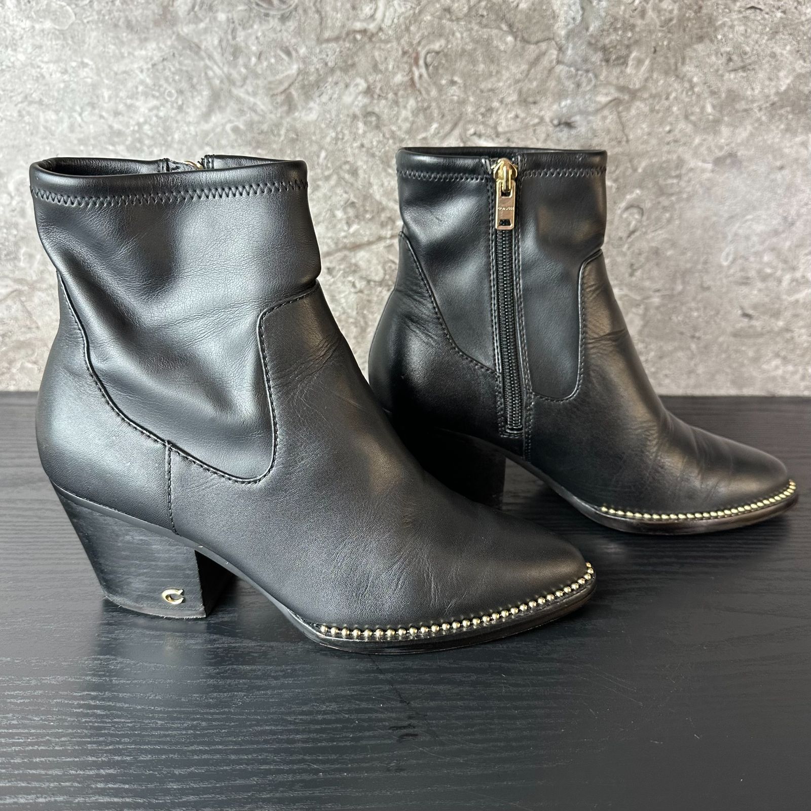 S 392 COACH コーチ PELL ペル G 4847 ロゴ スタッズ ソフトレザー ブーティ ショートブーツ 黒ブラック 6 C 23 cm