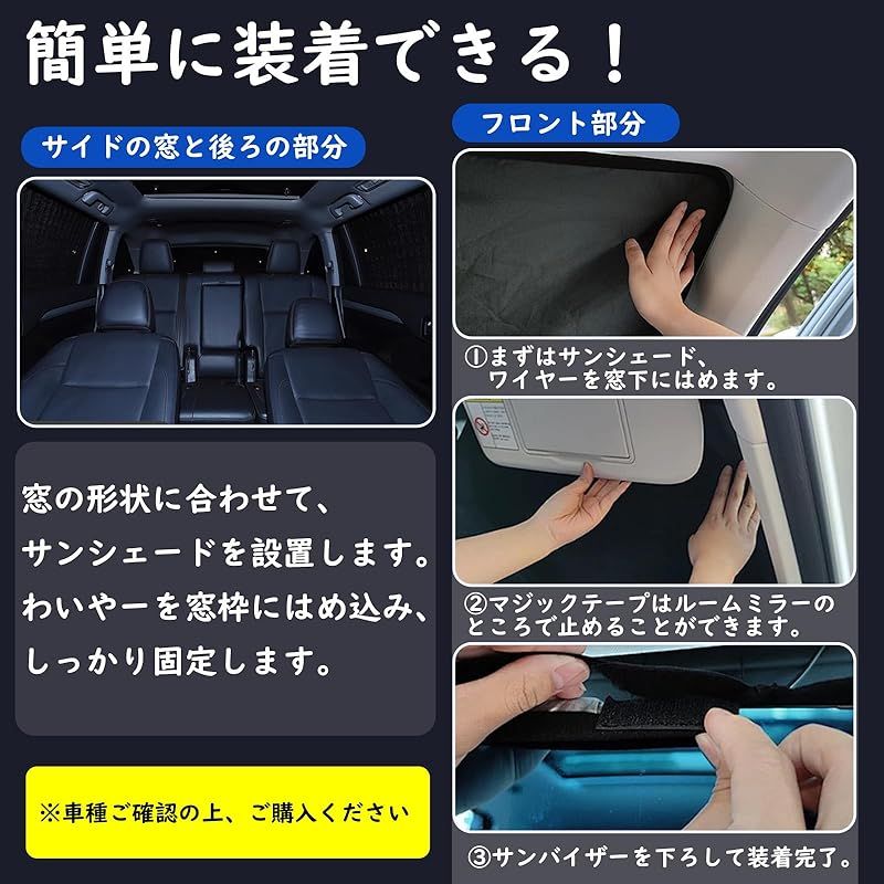 【車種専用設計】:完全車種専用設計で、窓の形にぴったり合うように設計されています。車窓やサンシェードは隙間が無いです。折りたたみ式、着脱が簡単,使わないときは、折りたたんで収納完了。