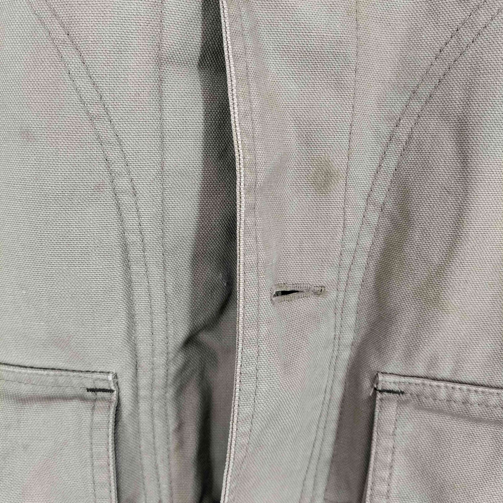 【状態詳細】襟レザー部分の汚れ、各所にシミ汚れ、第4ボタン欠損。