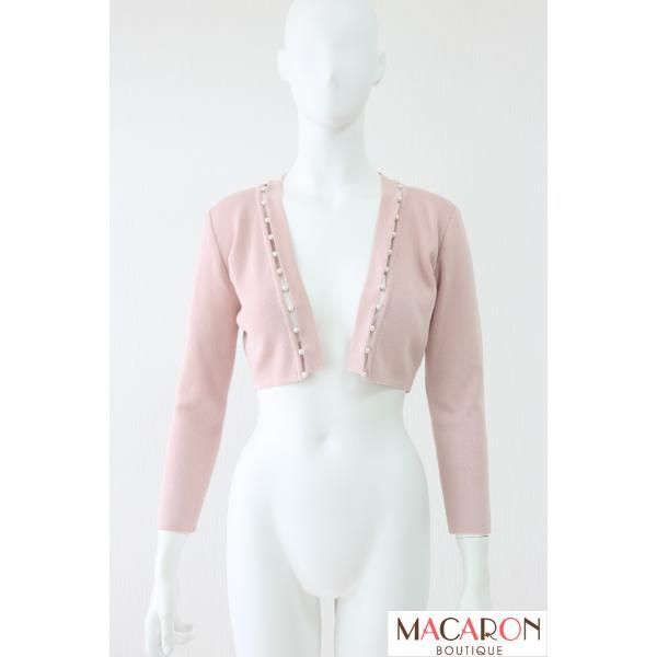 ポリエステルコットン素材のパール付ボレロカーディガンです。2019年商品