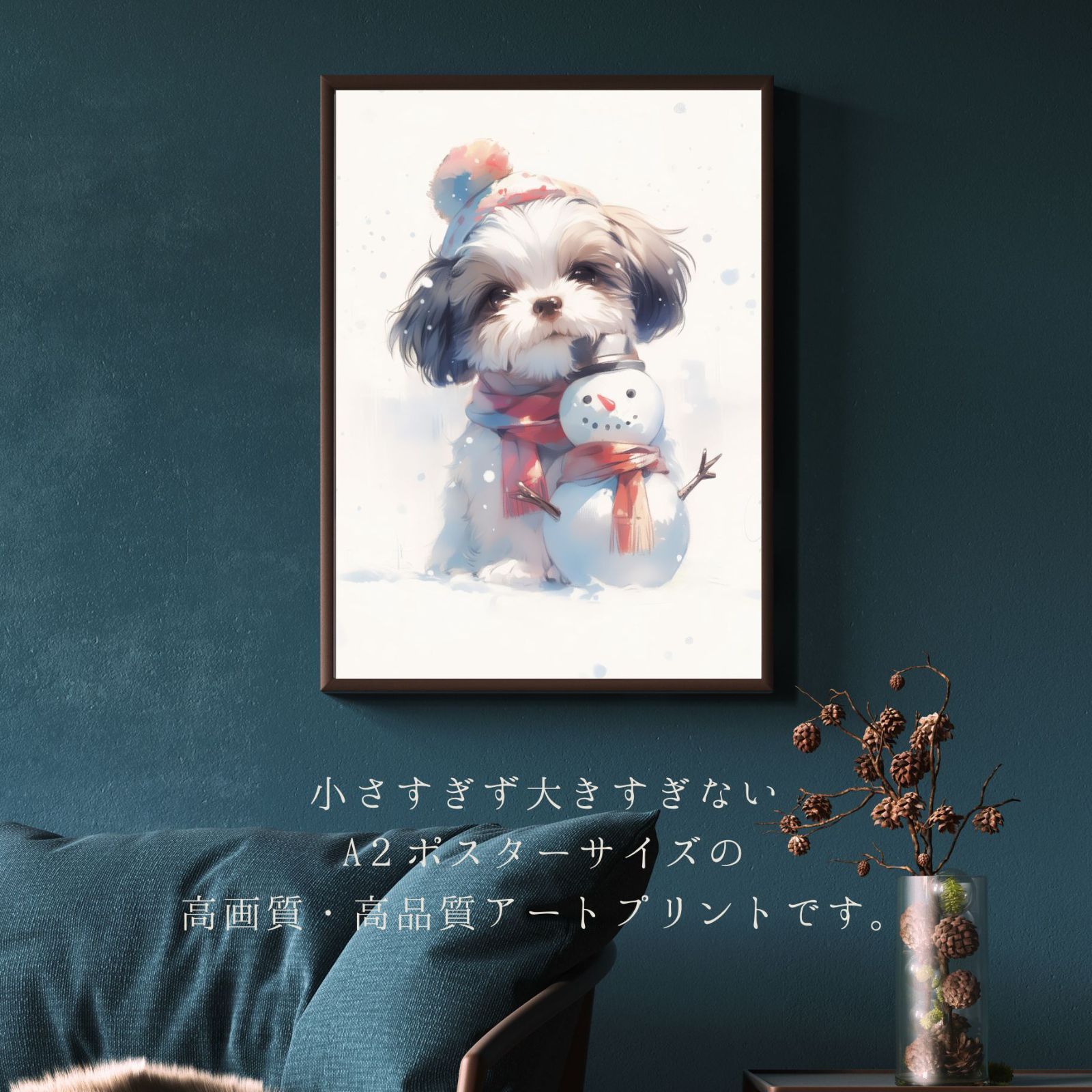 雪犬戯舞 - シーズー犬 No.1 冬 雪だるま 子犬 ペットロス うちの子 記念日 アートポスター 犬の絵 犬のイラスト ギフト プレゼント