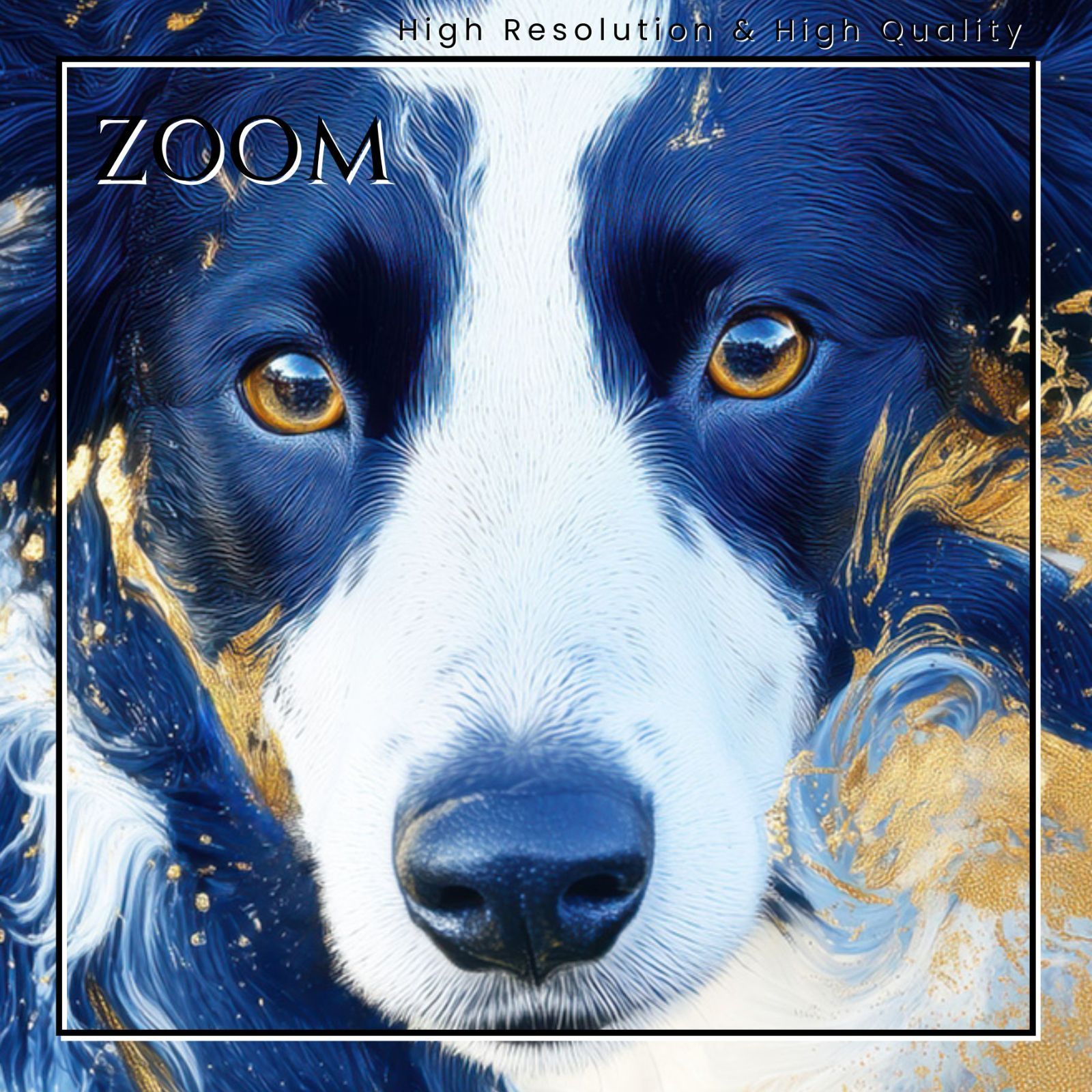 青と金が絶妙に融合し、愛犬の気品と力強さを繊細に表現した一枚です。