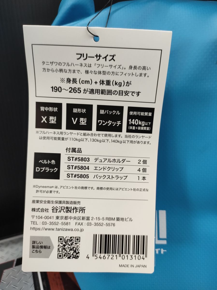 タフライト ST 522 KA N フルハーネス 軽量 新規格 タニザワ 品