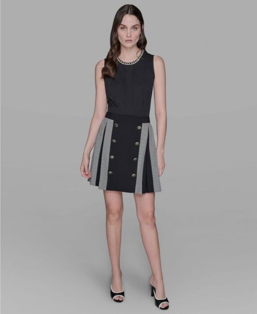カール ラガーフェルド レディース スカート ボトムス Women s Gingham Pleated Skirt Black|Soft White