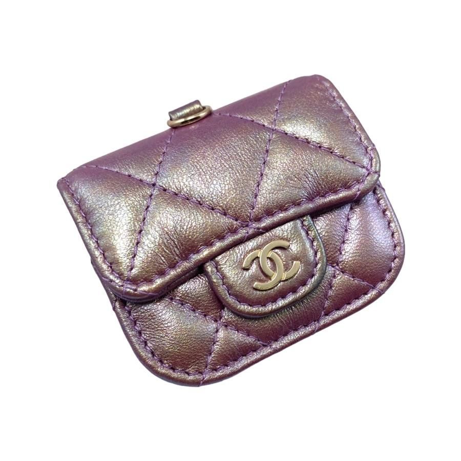 E 2697 シャネル AirPods Pro ケース マトラッセ ココマーク オーロラ パープル ピンク ゴールド金具 CHANEL