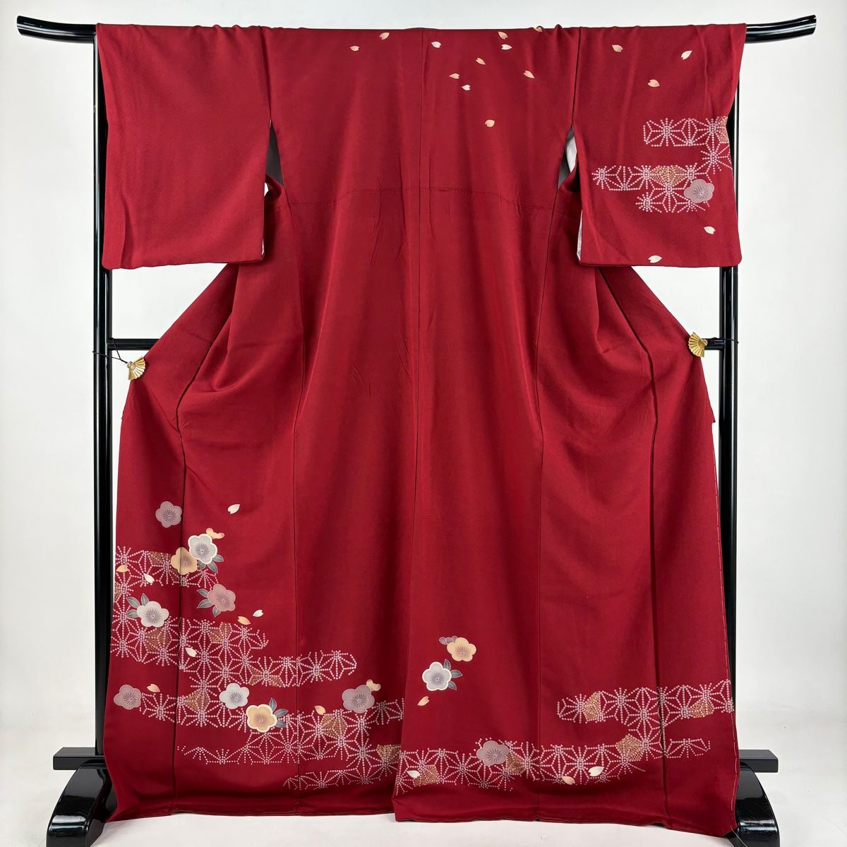 訪問着 身丈174.5 cm 裄丈67.5 L 袷 梅 麻の葉 金彩 赤 正絹 秀品