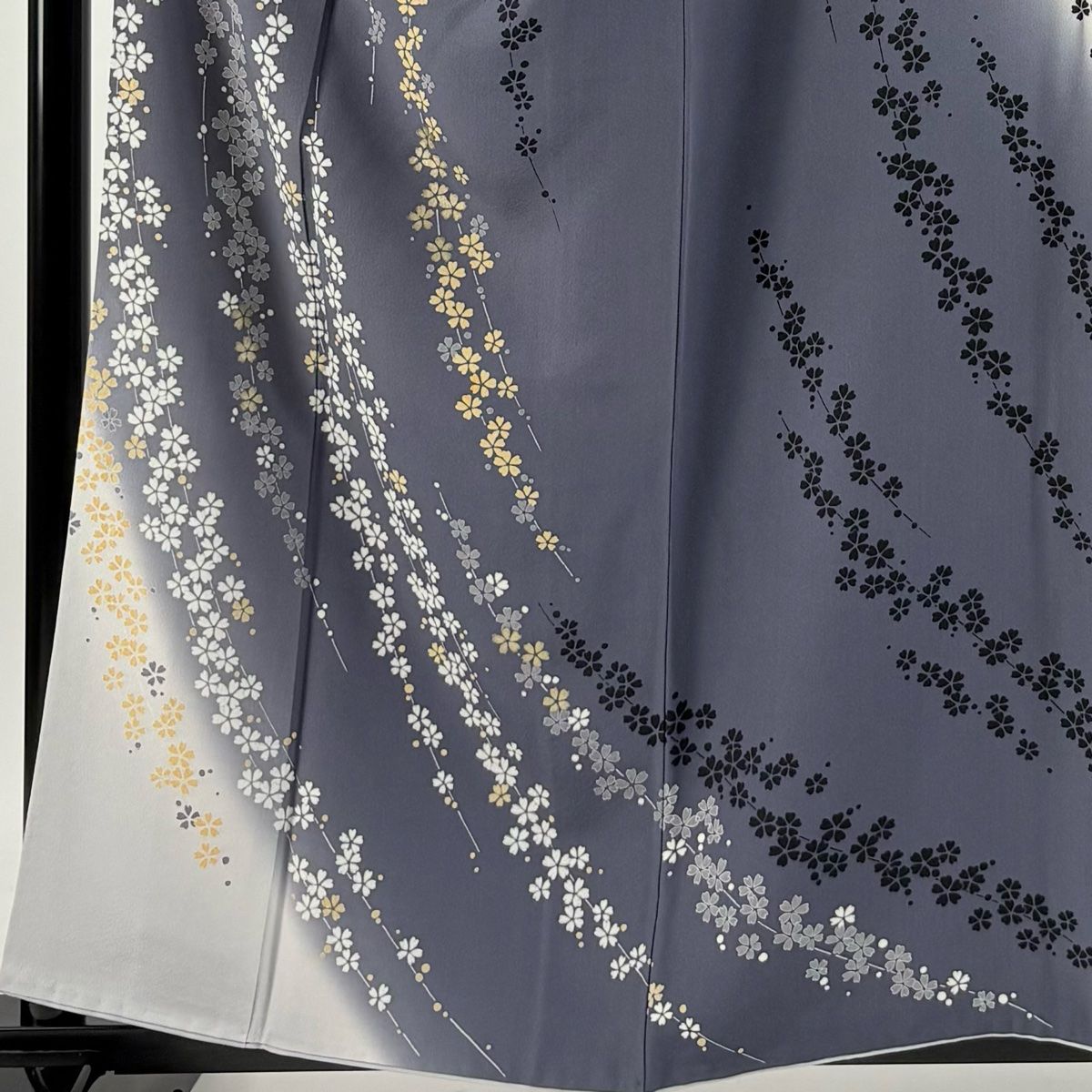 訪問着 身丈157.5 cm 裄丈66 M 袷 枝垂れ桜 ぼかし 金彩 青灰色 正絹 秀品