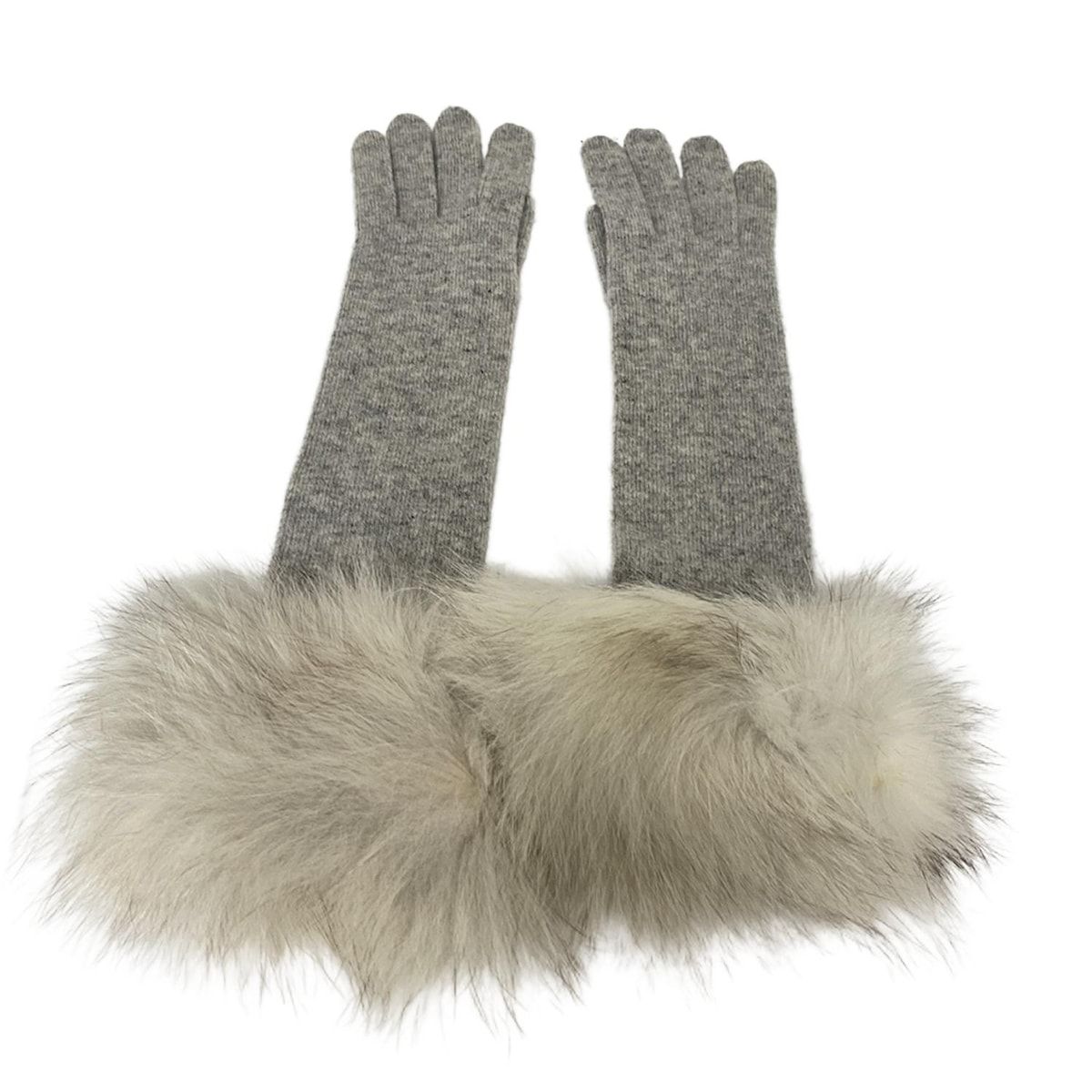 Sermoneta gloves セルモネータグローブス 手袋 レディース - ライトグレー×アイボリー ロンググローブ ファー カシミヤ