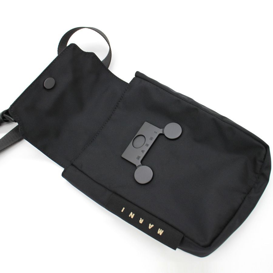 MARNI マルニ (TEMI0021A0 P8184) ブラック ナイロン Cityscape iPhone スマホホルダー クロスボディバッグ ショルダーバッグ ロゴ 鞄 レディース メンズ ユニセックス フロントフラップ 軽量