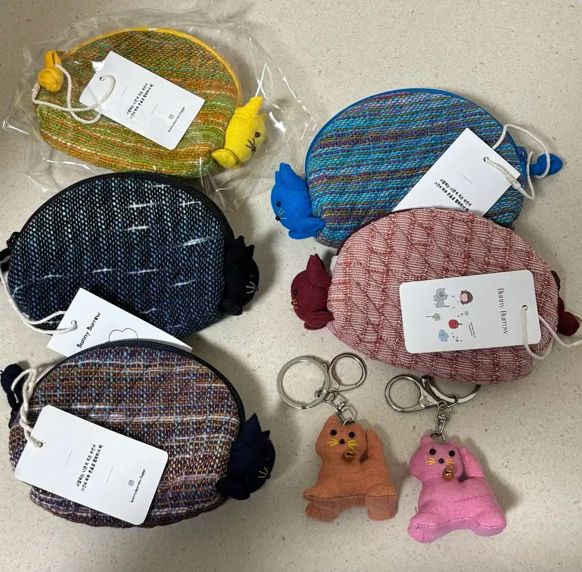 手作りのバニーボロー猫財布とキーホルダー