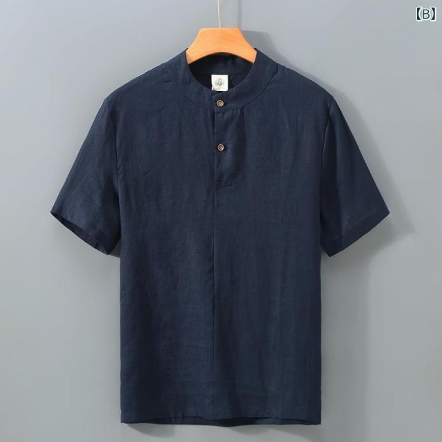 XL メンズ ファッション 服 男性用 オシャレ シンプル 大人 かっこいい 大きいサイズ ストリート 紳士服 レトロ リネン 半袖 シャツ フル 通気性