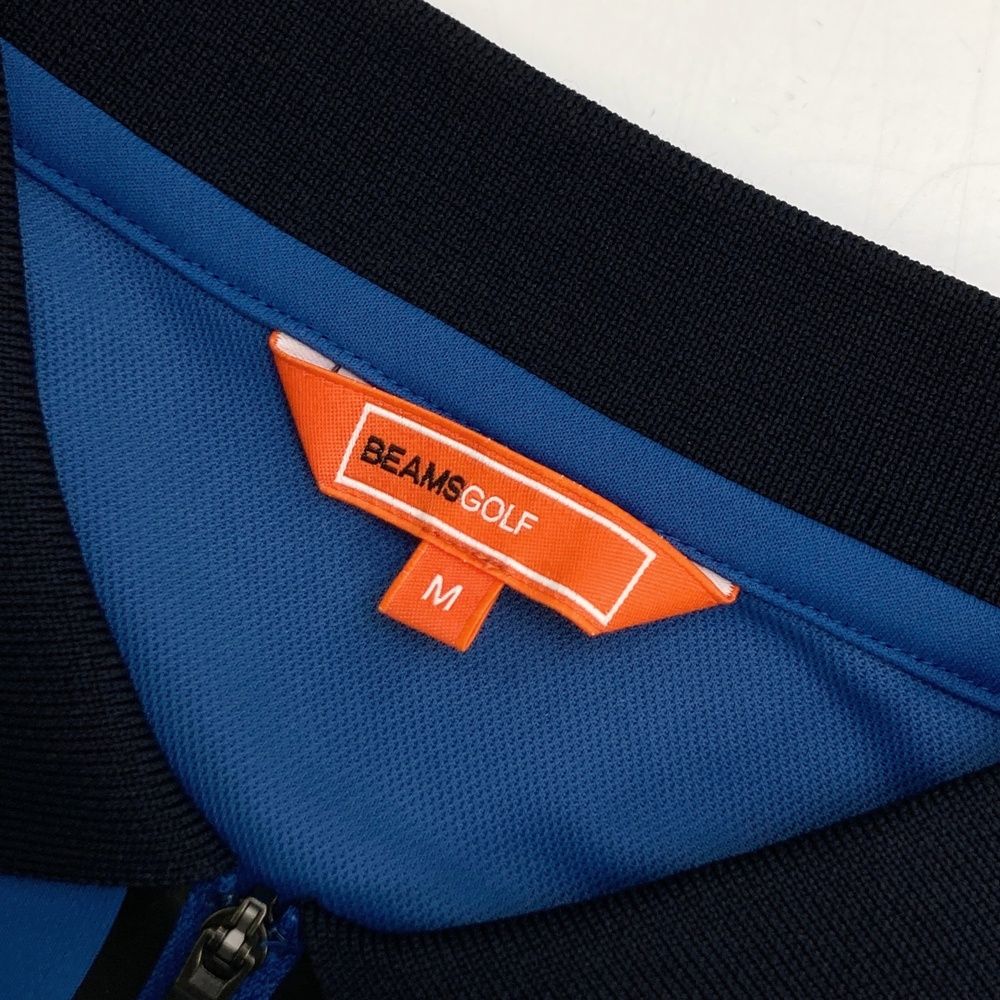 サイズ M BEAMS GOLF ビームスゴルフ 半袖ハーフジップポロシャツ ブルー系 ゴルフウェア メンズ ストスト