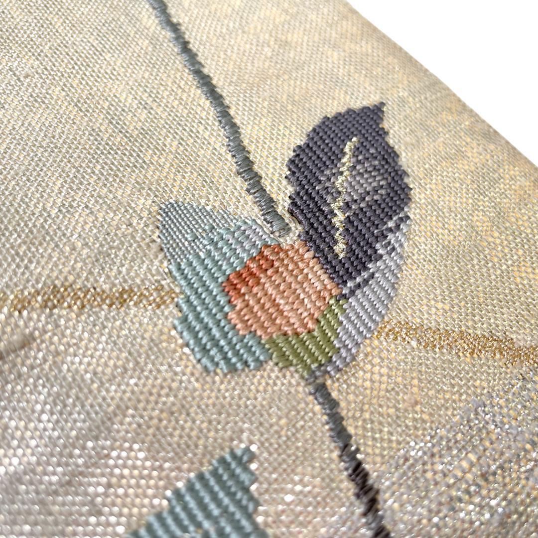 袋帯 つづれ織 洒落帯 正絹 金銀糸 椿 着物 kimonolove リユース品 オゾン消臭サービス AO-0560