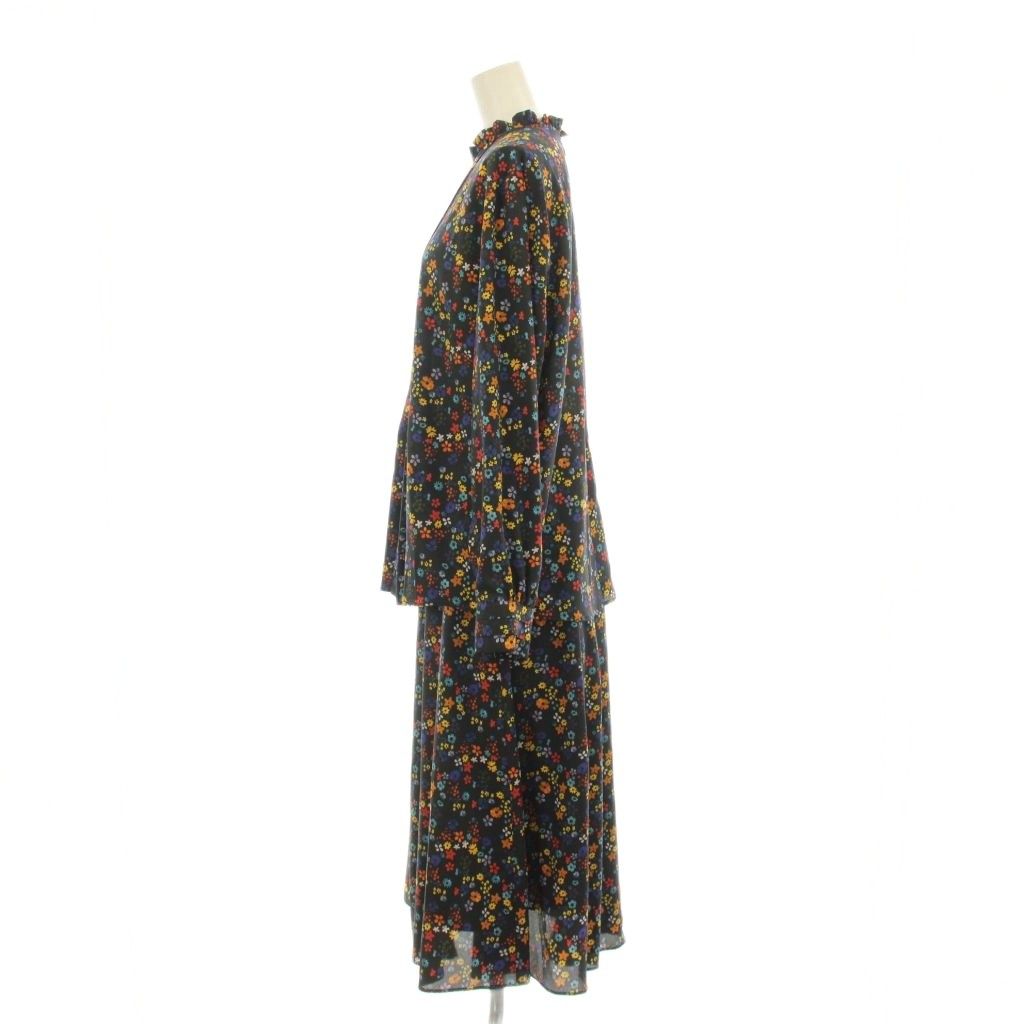 ピーエスポールスミス PS Paul Smith セットアップ 上下 ブラウス 長袖 フ スカート ロング マキシ 花柄 大きいサイズ 44 L 黒 ブラック マルチカラー |KU