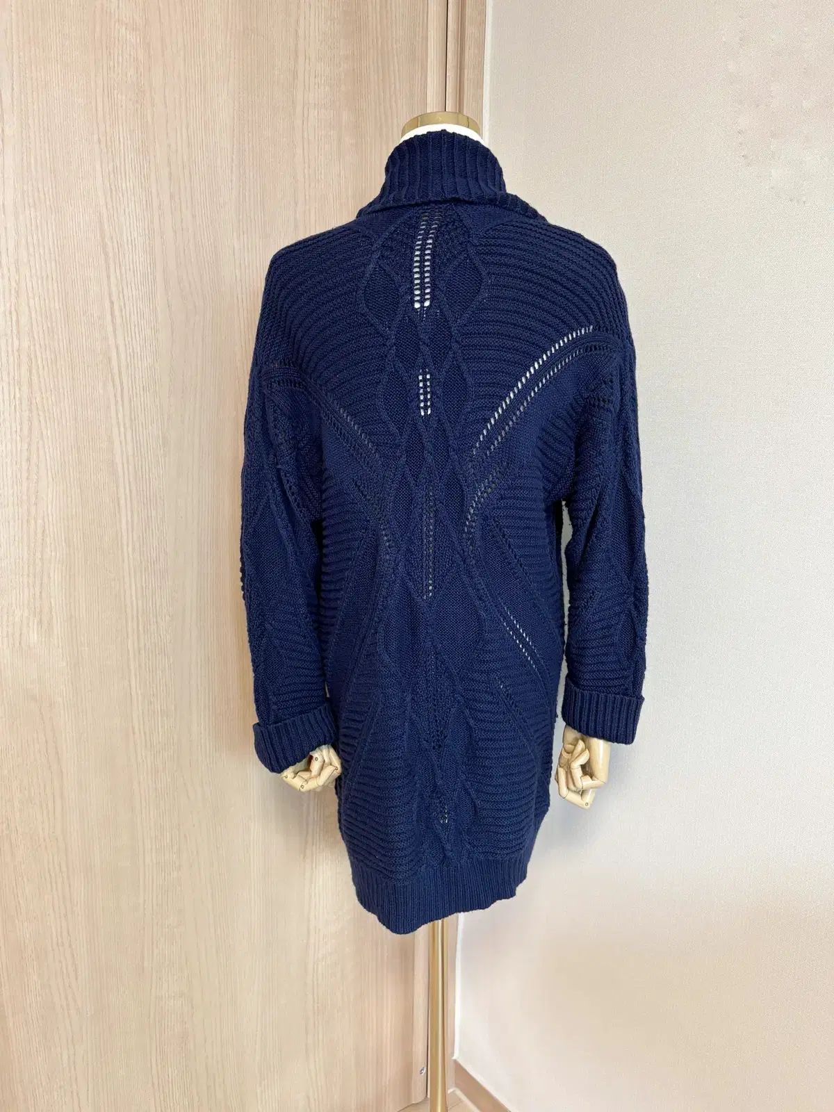 可愛らしいニット織りのショールカラーカーディガン